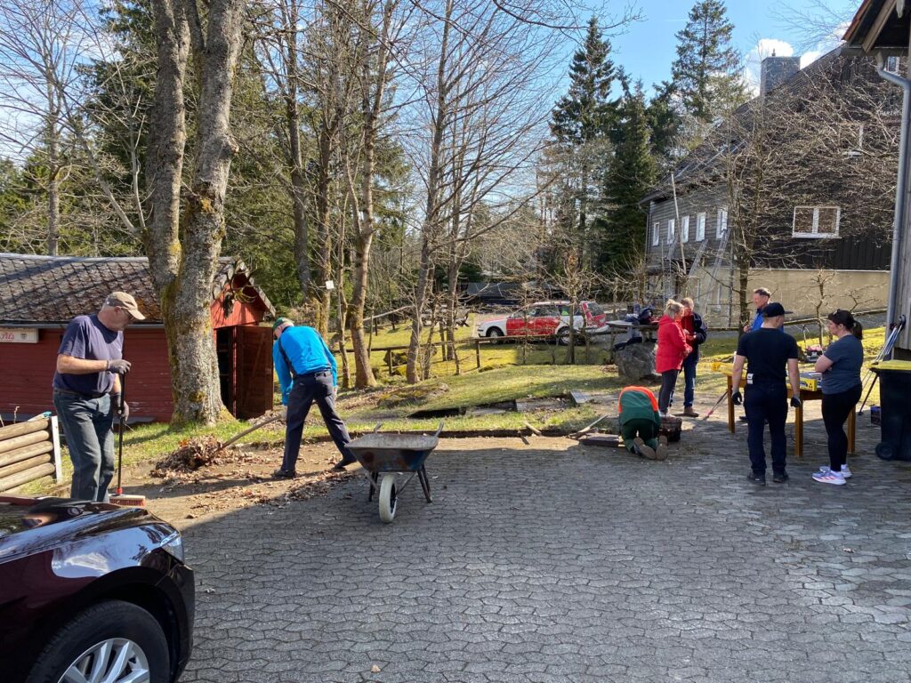 Dazu hatten sich etliche Vereinsmitglieder zum Frühjahrsputz für Haus und Gelände angemeldet und tatkräftig angepackt. So wurde es ein fröhliches Wiedersehen und nebenbei viel geschafft. Zum Abschluss gab es dann für alle eine Stärkung.